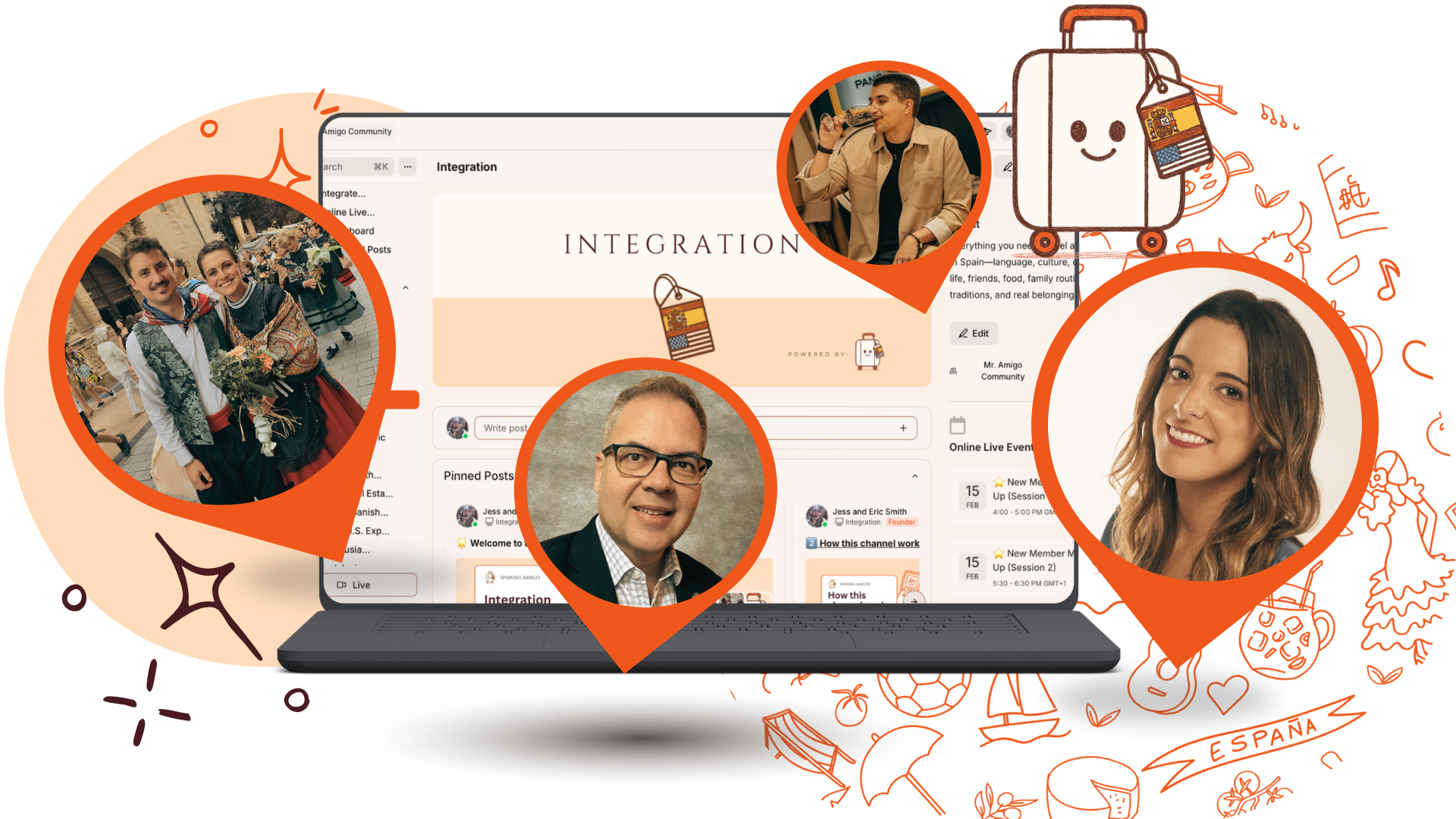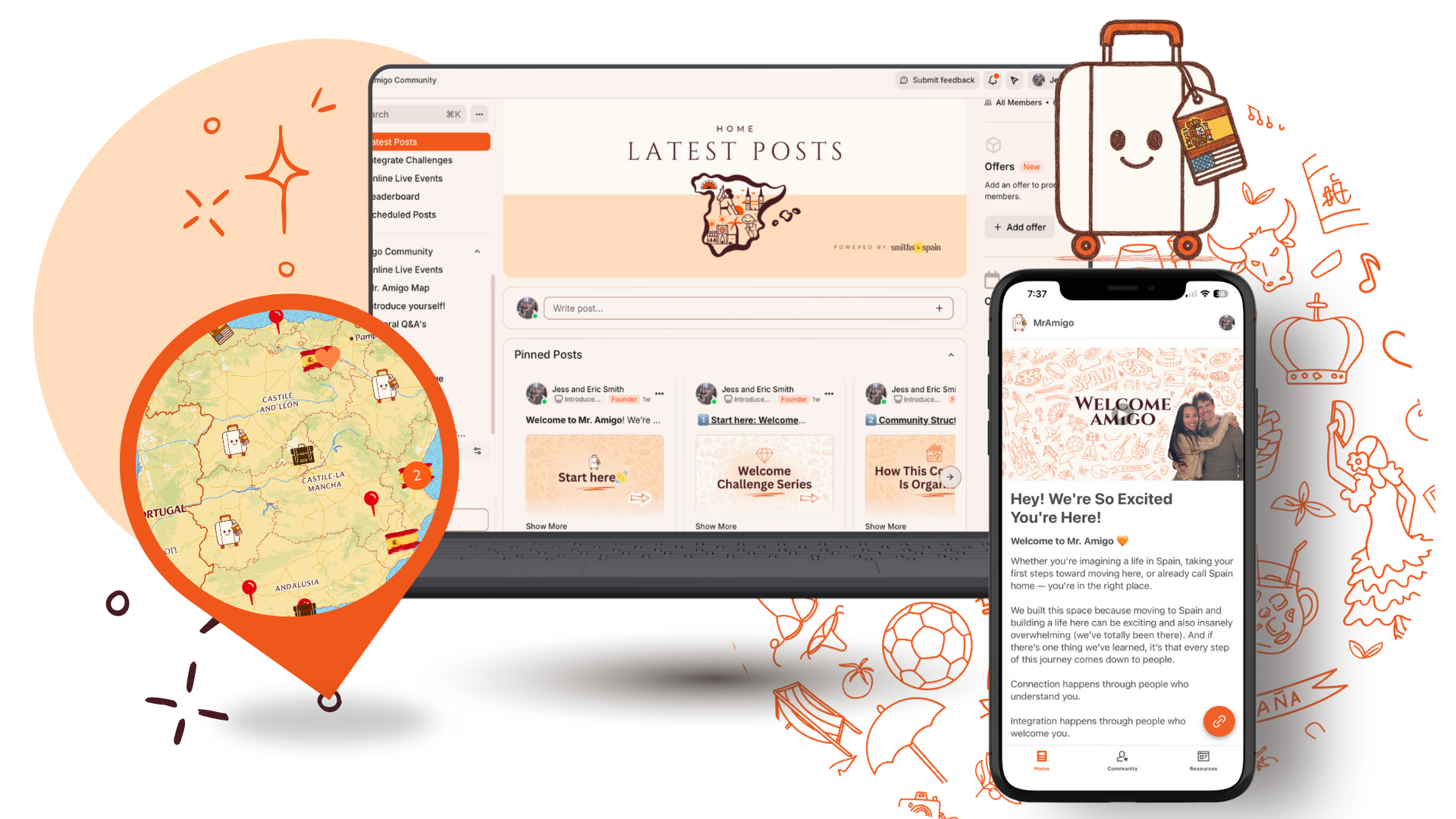 Explore the Mr. Amigo Map to see where members are located, send DMs, participate in integration challenges, and attend monthly online live events to start building your extraordinary life in Spain.